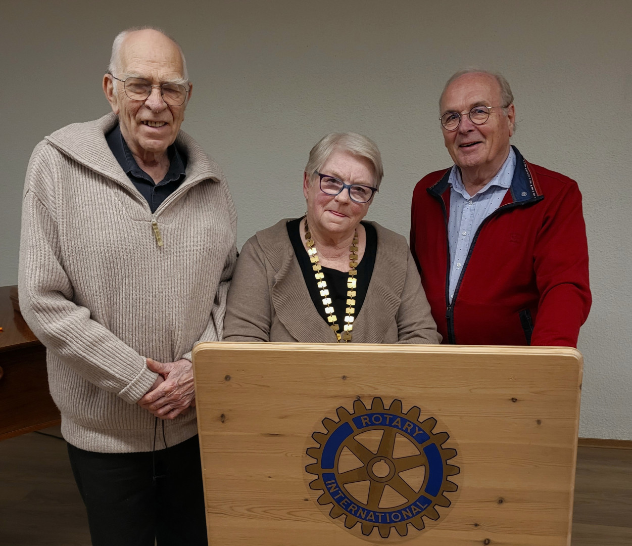 Arne holdt en kort takketale og minnet forsamlingen om at Ringebu Rotaryklubb feiret sitt 50-årsjubileum i 2017, et år der han også var klubbens president. Han uttrykte glede over å få lede klubben på nytt i et jubileumsår – 60-årsmarkeringen i 2027 – og ser fram til dette med entusiasme.
