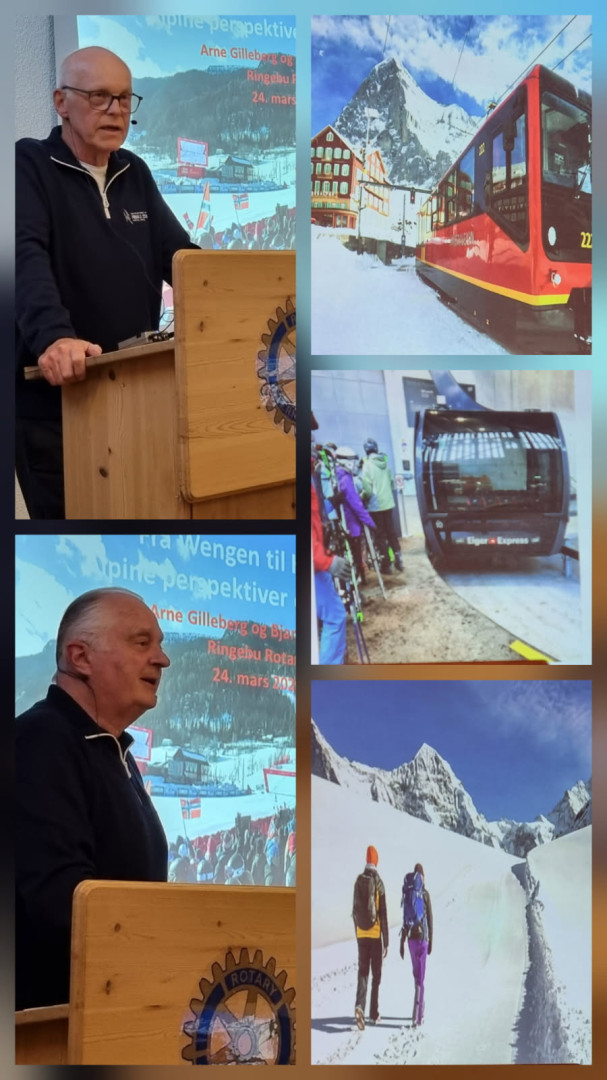 Arne har vært frivillig i 5 år, som sjåfør. Audi er sponsor, og i dag brukes bare elbiler. Arne fortalte om Wengen, Her går all transport med tog og store gondoler. Sentrum er bilfritt. Wengen er en av Europas største og viktigste alpindestinasjoner, med langt større publikumstall enn Kvitfjell. Lauberhornrennene ble arrangert første gang i 1930. utfortraseen er nesten 4,5 kilometer, lengst av alle. Flere norske alpinister har vunnet, utfor, slalåm eller kombinasjonen. I tillegg til å stå på ski kan man gå til fots i egne vintergangsløyper. Det er også tilrettelagt traseer for å kjøre kjelke fra toppen og ned. Wengen har turister hele året.
