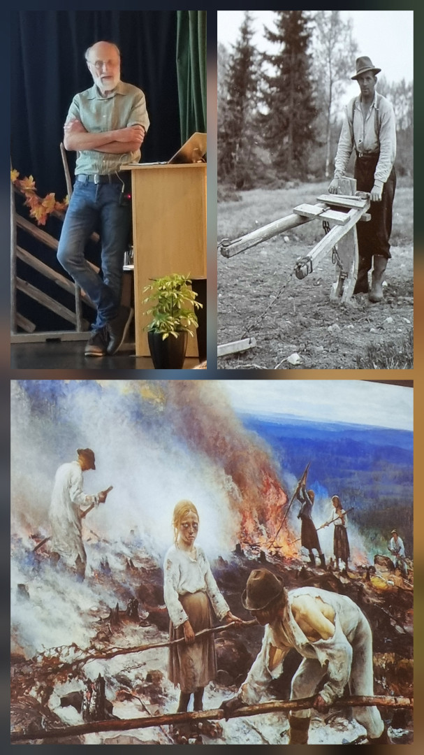 Per Morset har gjort inngående studier om den finske innvandringen til Norge på 16- 1700 tallet. Han har gitt ut to bind om skogfinnene på Hadeland og omkringliggende skogtrakter fram til år 1800. Dette arbeidet omfatter ca. 90 boplasser, med så mye som ca. 5000 personer. Vi fikk høre om det såkalte svedjebruket i granskog som skogfinnene var spesialister på. Skogen ble brent, og i asken ble det avlet fram svedjerug og neper. Et spørsmål er hvorfor de dro fra Finland. Her er det flere teorier: Fattigdom, et folk i krysspress mellom krigførende svensker og russere. Kanskje ressursmangel, for lite egnede arealer. Det var også konfikt med myndighetene.