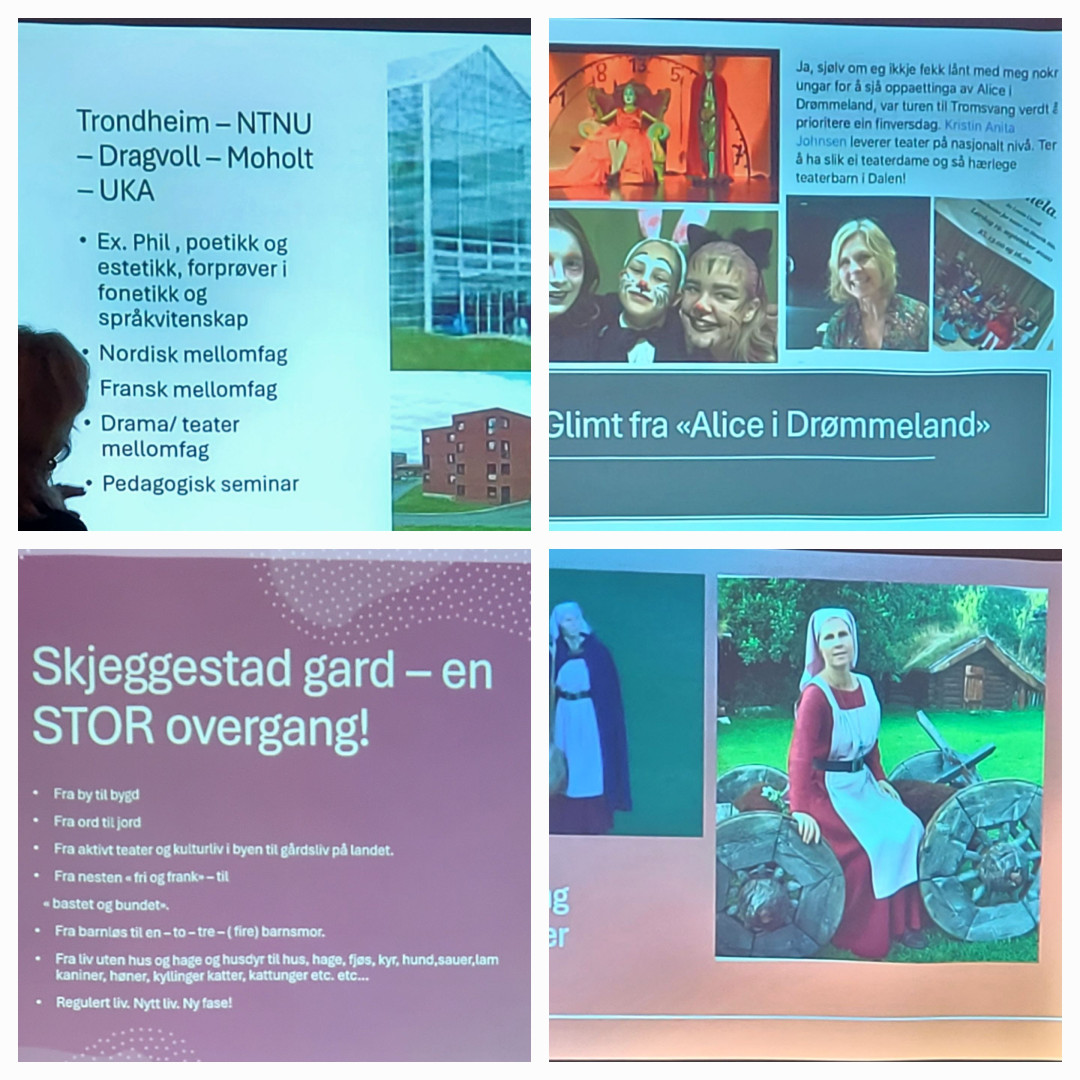 Kristin Anita Johnsen holdt et engasjerende «egoforedrag» der hun fortalte om barndom og oppvekst, og hvordan hun tidlig ble knyttet til Refling Hagens kulturelle teatermiljø – Suttungteatret. Sang og teater har alltid vært hennes store interesse, men hun valgte likevel læreryrket som levevei. Faget som står hjertet nærmest er fransk, og hun underviser både ved Sør-Fron ungdomsskole og en skole på Lillehammer.
